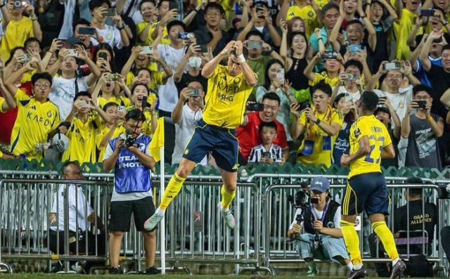 第38分钟,利雅得胜利快速反击,C罗前场得球后将球分到左路。利雅得胜利23号左后卫艾曼·叶海亚传中,吉达国民27号右后卫阿里·迈拉希手球,主裁判判了点球。给利雅得胜利的那个点球,是有争议的。此前,吉达国民进攻时,利雅得胜利球员在禁区前疑似有犯规动作,吉达国民才失去球权。可裁判示意比赛继续进行,于是才有了利雅得胜利之后的快速反击和点球。C罗主罚点球,面对切尔西前门将门迪,他冷静地将球打进。进球之后,C罗跑到角旗处,做出标志性庆功动作,队友们也跑上来祝贺他。